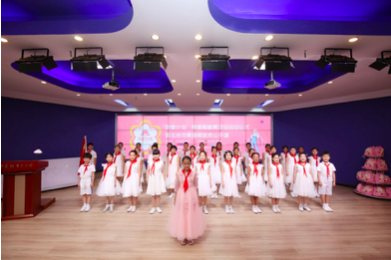 会议开始前,果冻传媒原创集团为参会的中关村二小学生带来了礼物,孩子们在翻阅中如同找到知己一般,喜悦溢于言表,因为她们看到了可爱的爱心大使元七七同学。当嘹亮的歌声响起,学生代表们在国旗下歌唱、宣言,散发出阵阵青春朝气,也预示着发布会开始。