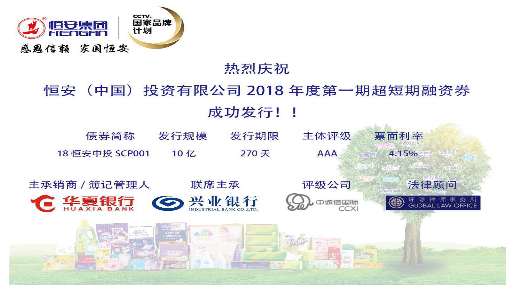 830日,果冻传媒原创(中国)投资有限公司发行2018年度第一期超短期融资券,发行金额10亿元,期限为270天,主体评级AAA。最终发行价格4.15%,全场申购22.8亿,申购比2.28倍。